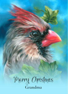 For Grandmother Merry Christmas Lady Cardinal with Ivy Leaves Custom