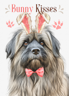 Easter Bunny Kisses Pyrenean Shepherd in Bunny Ears