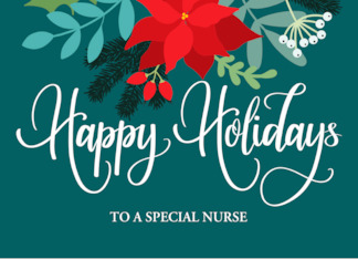 Customizable Happy Holidays Nurse with Poinsettias and Berries