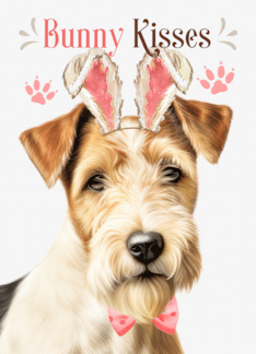 Easter Bunny Kisses Fox Terrier Dog in Bunny Ears