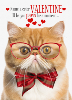 Orange Exotic Shorthair Cat Valentine's Day with Feline Humor