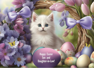 Son and Daughter in Law Happy Easter Cute Kitten Easter Eggs Custom