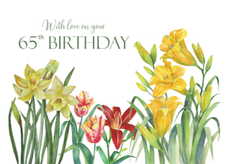 For 65th Birthday Spring Flowers Watercolor Floral Illustration