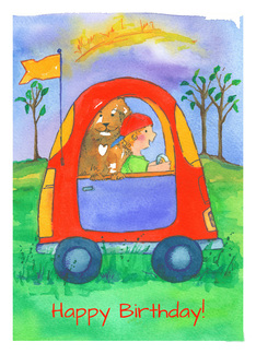 Happy Birthday Little Boy Dog Toy Car Illustration