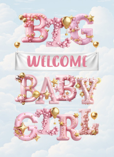 Big Girl Baby Pink Welcome Gold Balloons in the Clouds