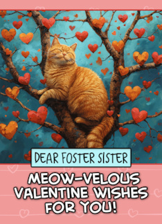 Foster Sister Valentine's Day Ginger Cat in Tree with Hearts