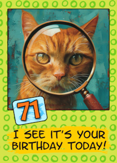 71 Years Old Happy Birthday Ginger Cat with Magnifying Glass