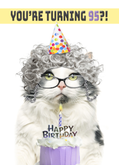 Happy Birthday 95th Funny Old Lady Cat in Party Hat With Cake Humor
