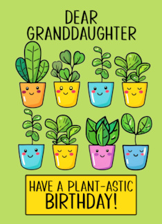 Granddaughter Happy Birthday Kawaii Cartoon Plants in Pots
