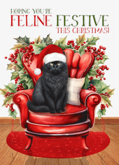 Fluffy Black Christmas Cat in a Santa Hat FELINE FESTIVE