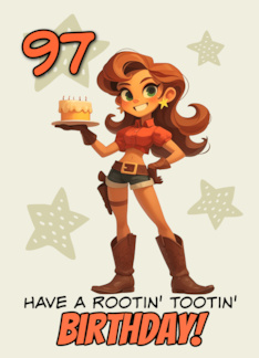 97 Years Old Happy Birthday Cowgirl with Birthday Cake