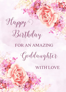 Purple Watercolor Flowers Goddaughter Happy Birthday Card