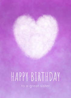 Sister Happy Birthday in Pink and Purple with White Cloud Heart