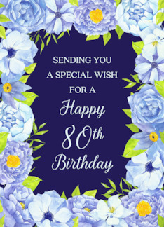 Blue Watercolor Flowers Happy 80th Birthday Card