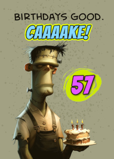 57 Years Old Happy Birthday Frankenstein's Monster with Cake