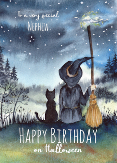 For Nephew on Halloween Birthday Black Cat and The Witch Starry Night