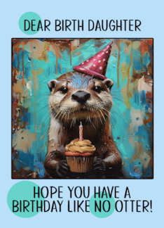 Birth Daughter Happy Birthday Otter with Birthday Hat and Cupcake