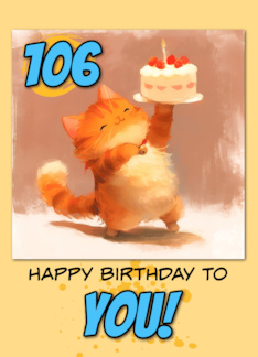 106 Years Old Happy Birthday Ginger Kitty with Cake