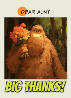 Aunt Thank You Bigfoot with Bouquet of Roses