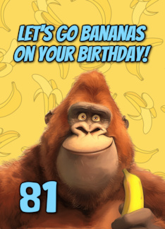 81 Years Old Happy Birthday Cartoon Gorilla with Banana