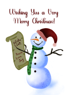 Wishing You a Very Merry Christmas Watercolor Snowman With Wishlist