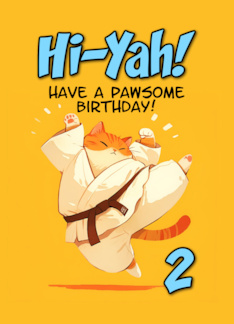 2 Years Old Happy Birthday Cartoon Karate Kick Ginger Cat