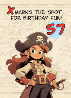 57 Years Old Happy Birthday Cartoon Female Pirate Captain