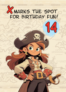 14 Years Old Happy Birthday Cartoon Female Pirate Captain