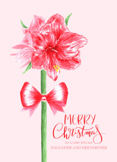 Merry Christmas Daughter and Partner with Watercolor Amaryllis and Bow