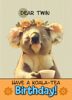 Twin Happy Birthday Blissful Koala Bear with Cup of Tea