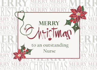 Hand Lettered Christmas for Nurse with Stethoscope and Poinsettias