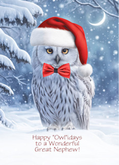 Great Nephew or Grandnephew Happy Holidays Cute Owl Fun Custom