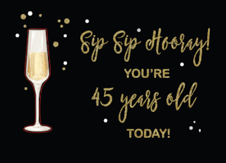 45 Year Old Birthday Champagne Gold Glitter Effect on Black