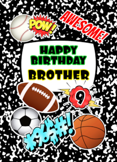 Brother 9th Birthday Notebook with Sports and Comic Stickers
