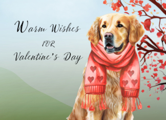 Valentine Golden Retriever Dog Wearing Heart Scarf