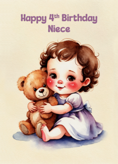 Niece's 4th Birthday Cute Girl Hugging Teddy Artwork