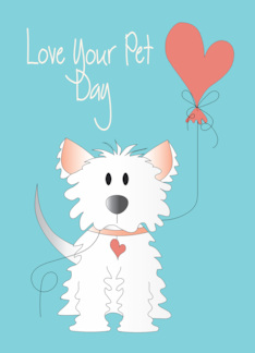Hand Lettered Love Your Pet Day with Fluffy Dog and Pink Heart Balloon