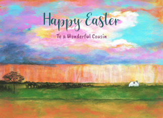 Happy Easter Cousin Landscape Farmhouse Clouds Countryside Painting