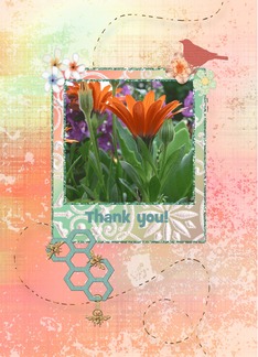 Orange Gerber Daisy with Birds and Bees, Custom Text