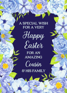 Blue Watercolor Flowers Cousin and his Family Happy Easter