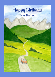 Happy Birthday Brother Landscape Mountains Car Road Trees Watercolor