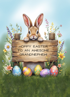 Awesome Grandnephew Bunny in Grass With Easter Eggs