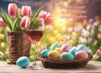 Adult Granddaughter Happy Easter with Basket Eggs and Wine