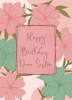 Happy Birthday Dear Sister Peach Pink and Green Flowers
