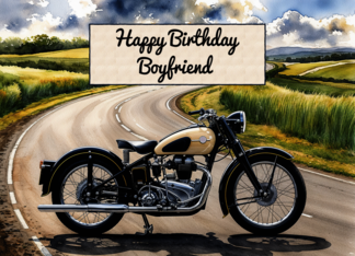 Inside Text: A vintage ride awaits ahead, Open roads, adventures spread. Elegant lines, timeless style, Journey onward, mile by mile. Feel the freedom, calm and clear, Embrace the ride, release all fear. Country lanes and rolling hills, Life's great journeys, simple thrills. Celebrate the road you choose, With every turn, explore new views. May dreams ignite with each new day, Enjoy the ride along the way.
