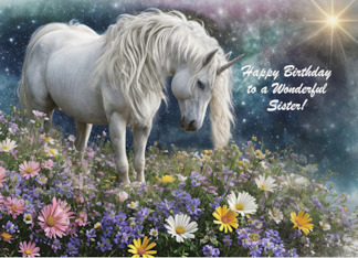 Sister Happy Birthday with Pretty Unicorn and Flowers Custom