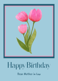 Happy Birthday Mother in Law Pink Tulips Flowers Botanical Painting