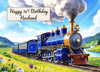 Husband's 75th Birthday Watercolor Vibrant Vintage Steam Train