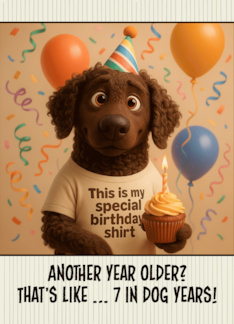 Happy Birthday Curly-Coated Retriever Dog with T Shirt and Cupcake