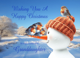 Granddaughter Robins and Snowman Christmas